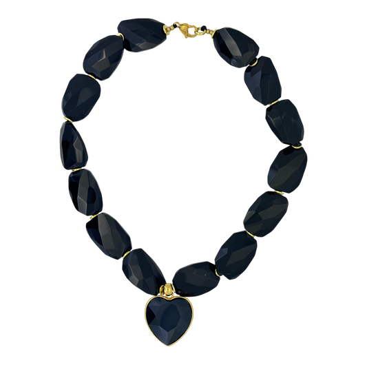 Heart Crystal Necklace –Jet-Gold