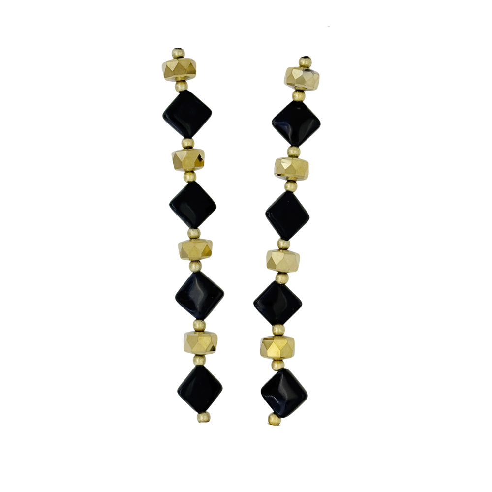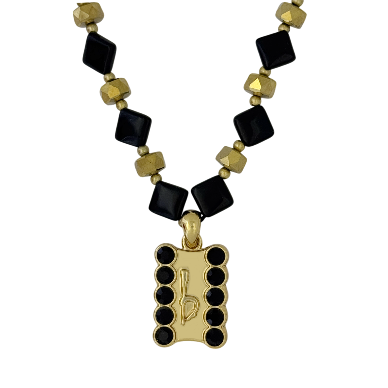 ‘b’ Logo Beaded Necklace-Jet- Gold