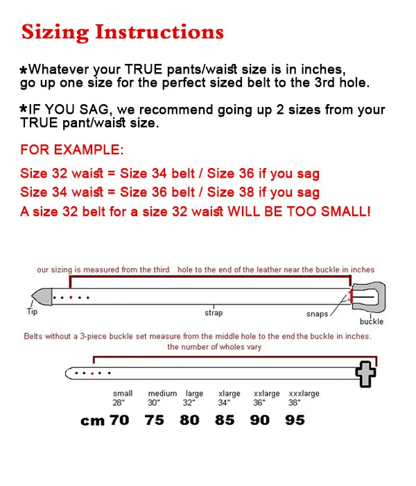 Go one size up from your true pants size to achieve the perfect fit in a BB Simon Belt.